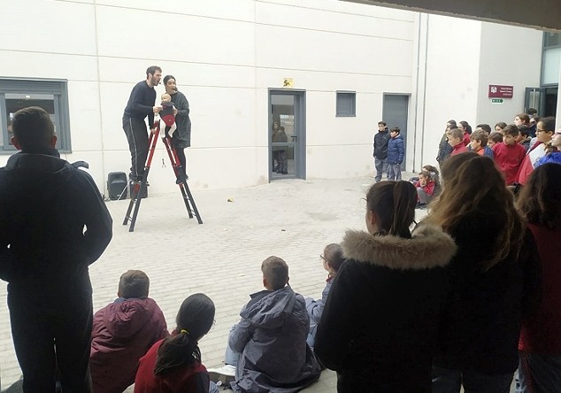 Utilizamos el juego escénico de una escalera para interactuar con el alumnado y favorecer la toma de conciencia más clara sobre la desigualdad de género que está en la base de la violencia contra las mujeres. Logramos el impacto buscado por el efecto sorpresa, que supuso acercar la escenificación a los patios y por la propia dinámica de participación generada.