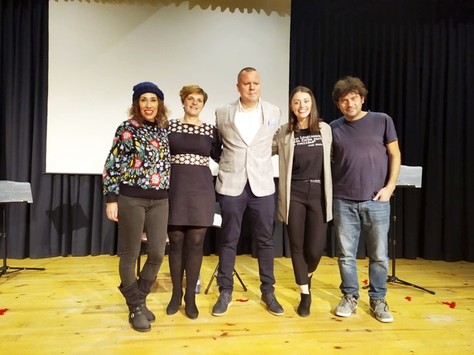 El Centro Cultural Federico García Lorca de Humanes dio la bienvenida a nuestro monólogo musical “Querida Leia”, en el que Rocío, nuestra protagonista, cuenta y canta cómo el hecho de ser mujer ha influido en sus diferentes etapas vitales. Parte de su magia radica en que las anécdotas que cuenta son historias que nos han compartido muchas mujeres en talleres y espacios grupales, y que compartimos todas las mujeres que asistimos como público, generándose así un imaginario de redes de mujeres muy grande. Se finalizó la representación con un cierre y conclusiones, teniendo una gran cogida por parte del municipio. En la foto, de izquierda a derecha, Laura González (actriz y cantante), Paloma y David (concejalía de Mujer e Igualdad y de Educación), Clara (equipo de coordinación de Delfoteatro) y Rafa Boeta (director y dramaturgo de Delfoteatro),