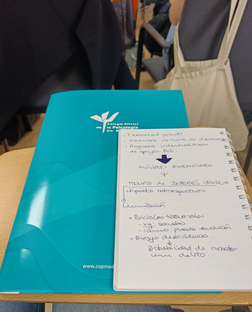 Del mismo modo, durante el segundo curso, se abordaron diferentes temáticas complementarias, tales como una introducción general del proceso de evaluación pericial psicológica en el ámbito forense, conceptos básicos de psicopatología criminal y forense, uso de pruebas psicométricas en el contexto forense, el papel de las y los profesionales de la psicología en materia de infancia y violencia de género, así como protocolos y valoración del riesgo de la peligrosidad.