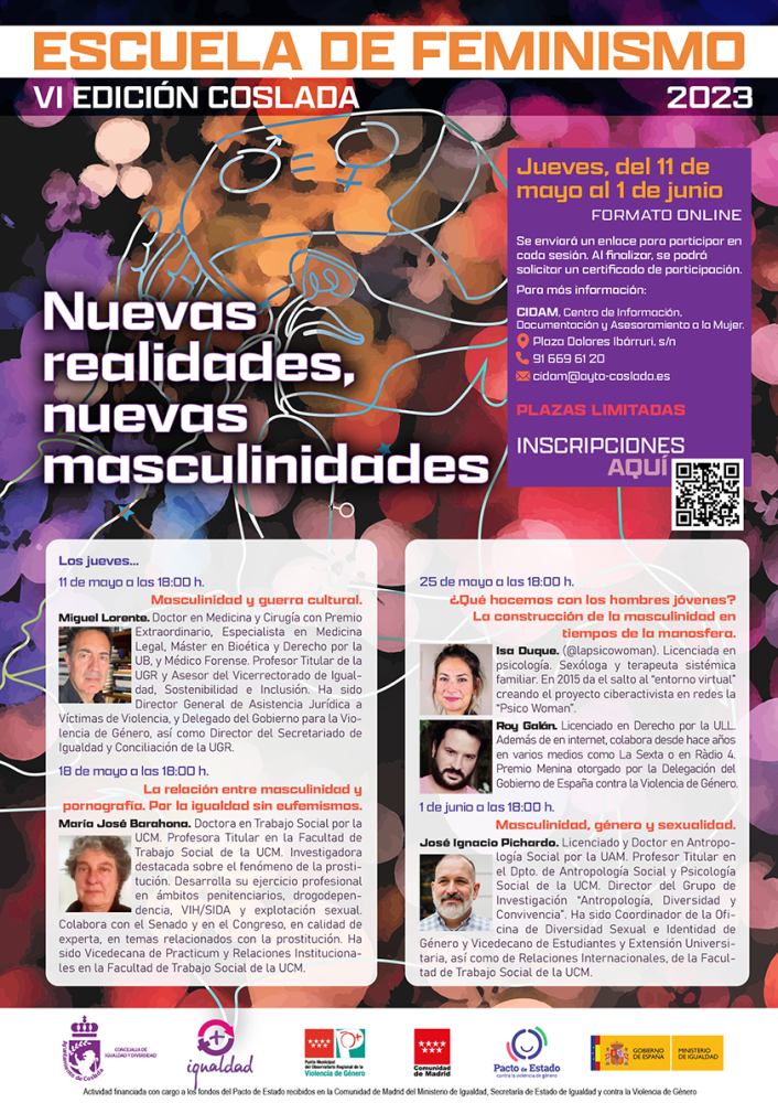 Otro año más, agradecemos al Ayuntamiento de Coslada y al CIDAM la confianza depositada en Delfo para organizar la VI edición de la escuela de feminismo. En esta ocasión, bajo el título, nuevas realidades, nuevas masculinidades.