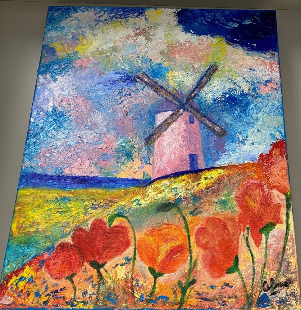 Tampoco pensé jamás que podría ver expuesta mi obra. En el centro donde voy a terapia, el Espacio de Igualdad de San Blas-Canillejas, la psicóloga me animó a exponer. Y ahora 13 cuadros pintados por mí cuelgan de las paredes, y verlos ahí es una experiencia muy bonita. Escucho a la gente decir que le gustan, y es muy gratificante.